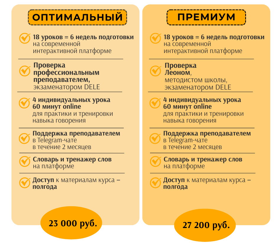 - для тех, кто хочет индивидуальную подготовку с поддержкой профессионального преподавателя, сертифицированного экзаменатора DELE