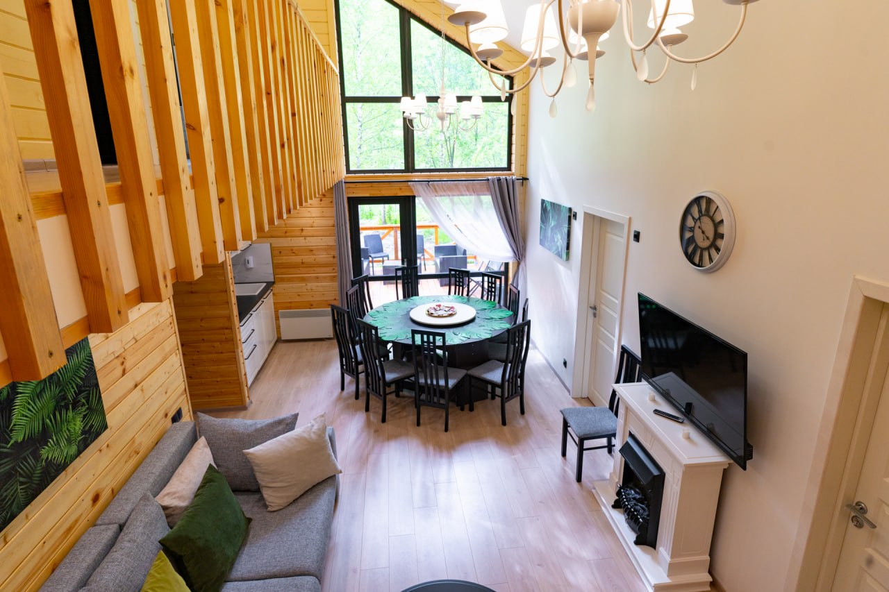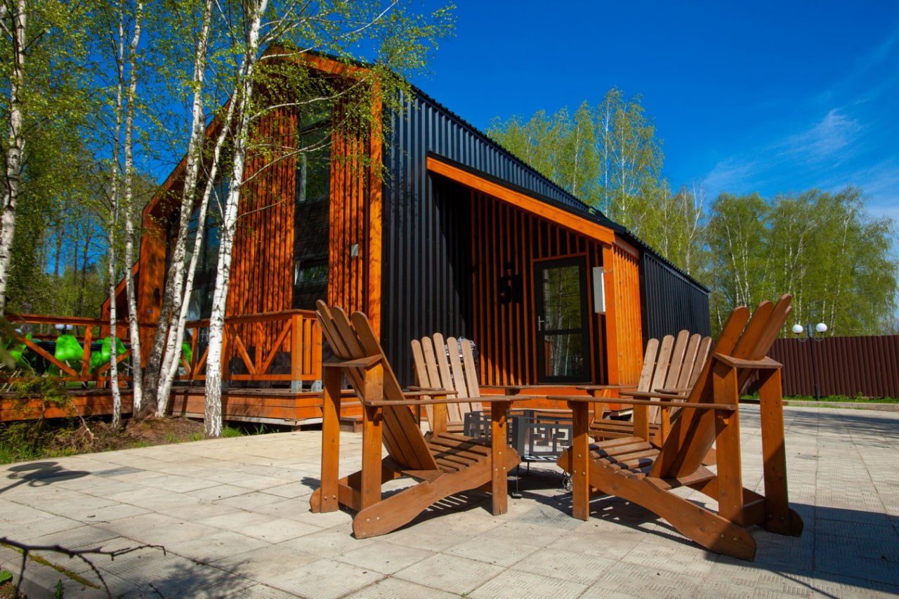 📍 Будем жить в живописной усадьбе Гребнево в 40 км от Москвы по Ярославскому направлению. Это загородное пространство с природой, тихими прогулочными зонами и уютной атмосферой. Вот фотографии нашего домика «Есенин» с патио и костровой чашей 👇